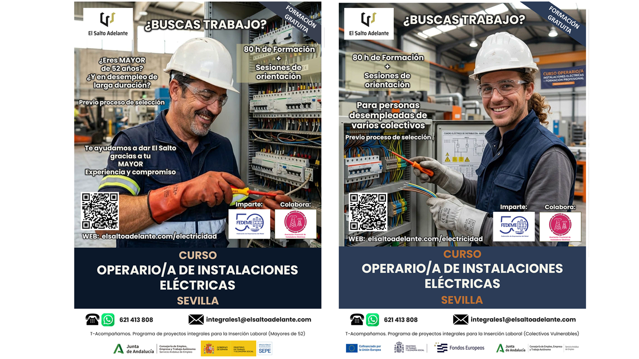 La Asociación El Salto Adelante vuelve a contar con la experiencia y profesionalidad de FEDEME, que en esta ocasión participa como entidad impartidora de la acción formativa gratuita: “Operario/a de instalaciones eléctricas”, dirigida a mejorar la empleabilidad de personas desempleadas pertenecientes a diversos colectivos con especiales dificultades de inserción.