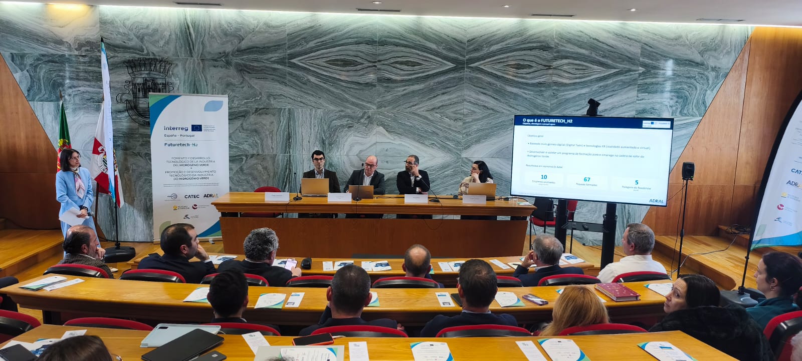 Durante la sesión se expusieron los avances del proyecto y el potencial del hidrógeno verde como motor de transformación económica e industrial en la región Alentejo-Andalucía.